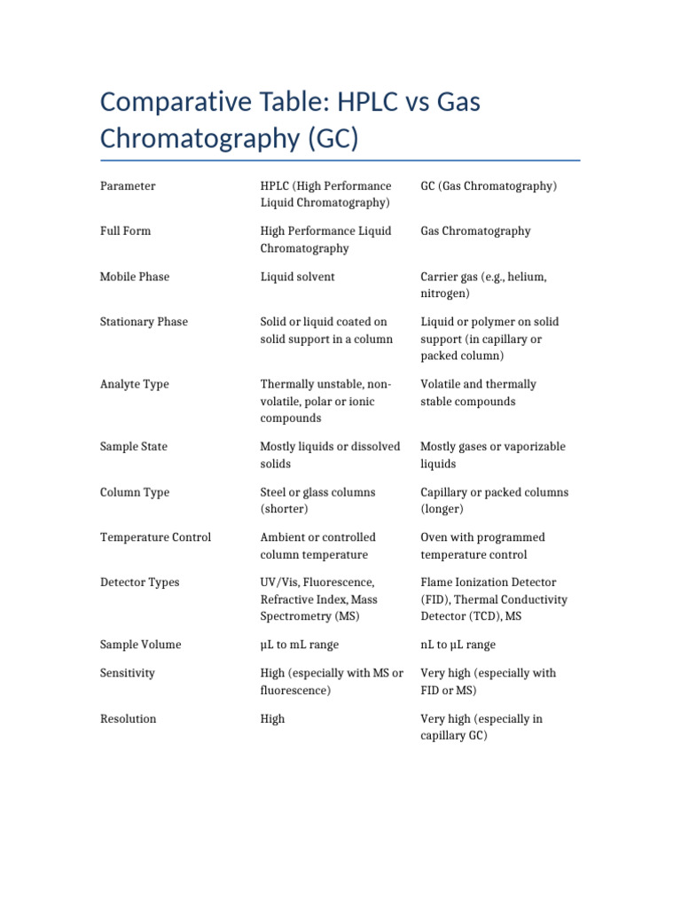 Comparation_table | PDF | Gas Chromatography | High Performance Liquid ...