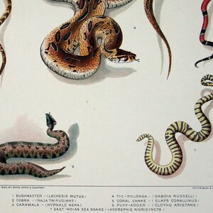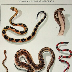 Foreign Venomous Serpents - Snakes: Original 1902 Dated Chromo ...