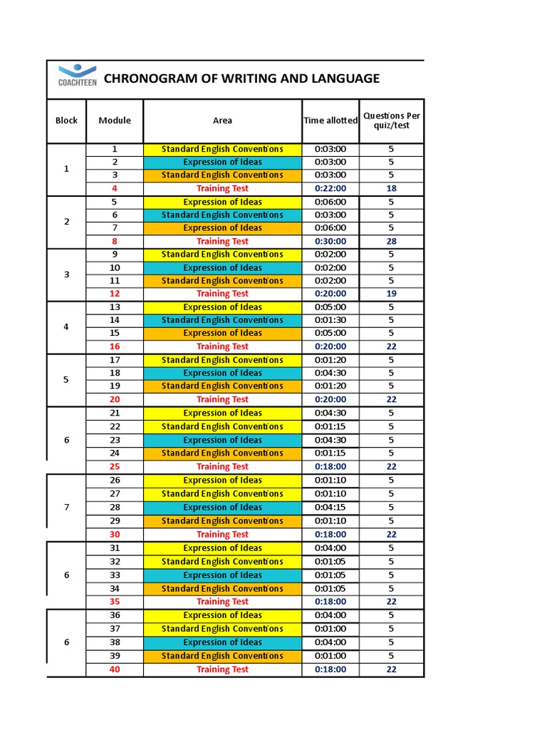 Chronogram of Writing and Language: 4 Training Test | PDF