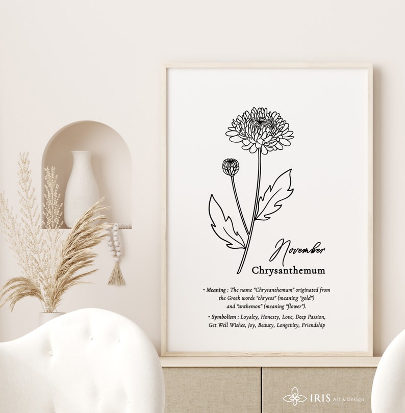 Birth Month Flower Print, Printable Wall Art, November Birth Month ...