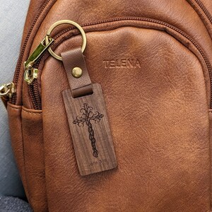 Custom Engraved Wood Keychain Cross Bible Verse Gift Custom Scripture ...