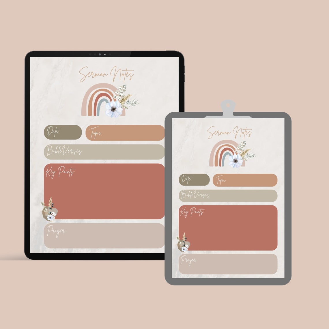 Digital Sermon Notes Template | Bible Study Journal, Rose Theme (PDF ...