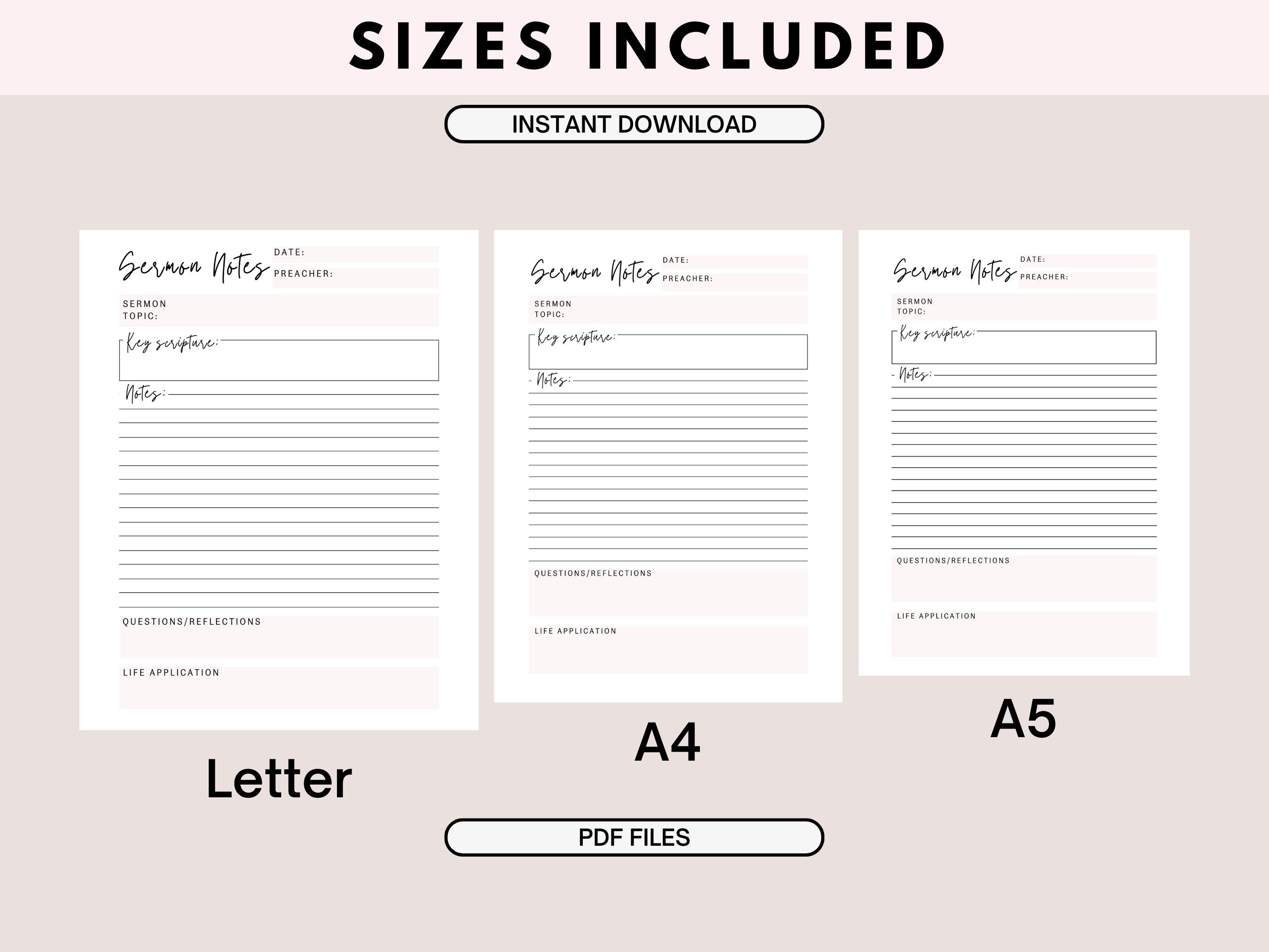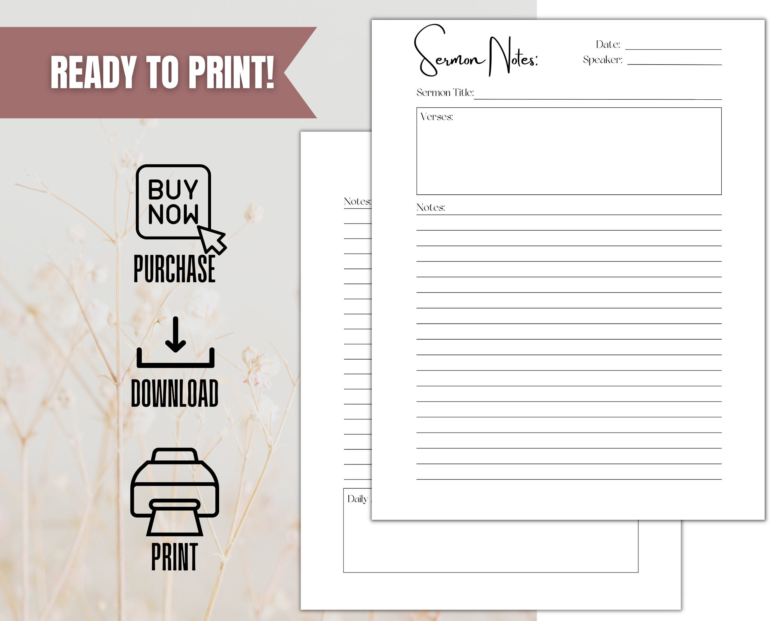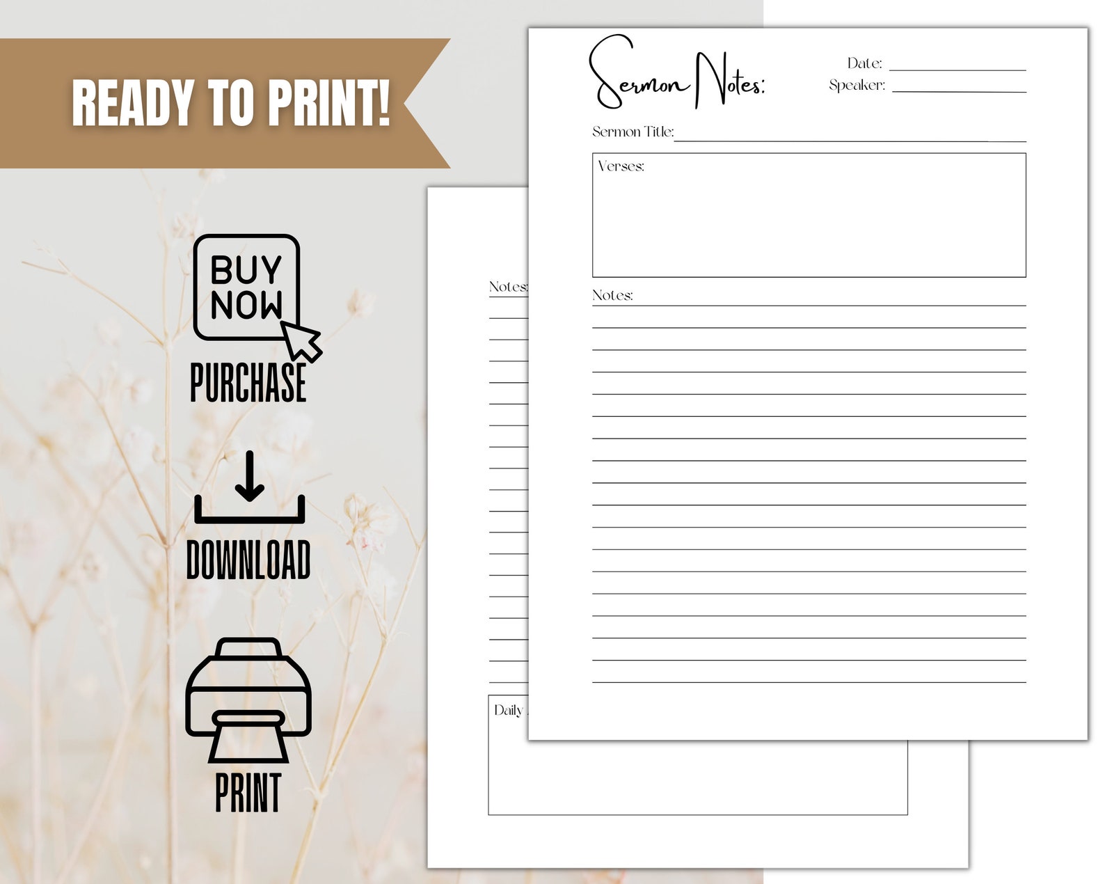 Printable Sermon Notes PDF | Church Notes | Instant Download | US ...