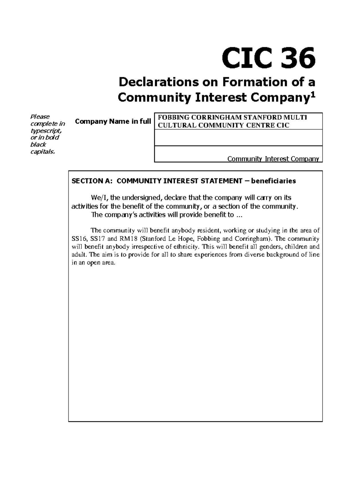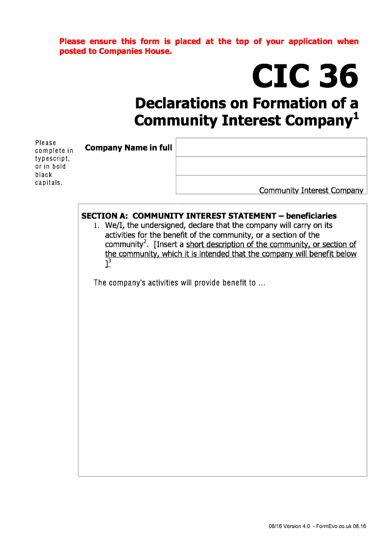 Application to Form a Community Interest Company. What is CIC36 form ...