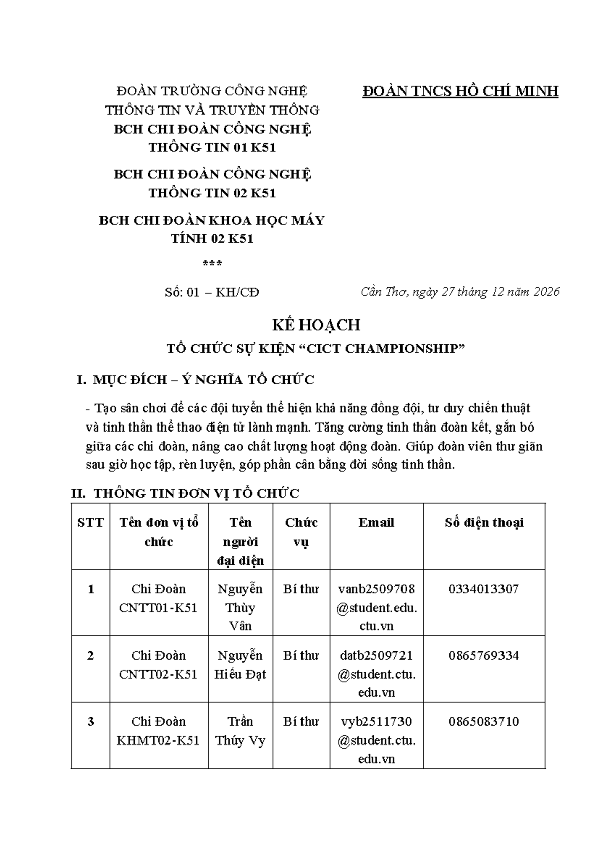 [Kế Hoạch] Tổ Chức Giải Đấu CICT 2026 - CNTT K51 - Studocu