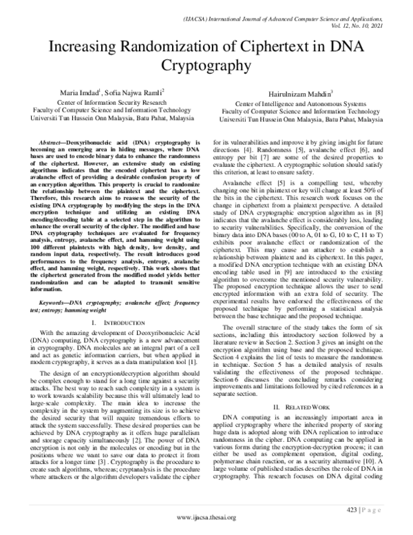 (PDF) Increasing Randomization of Ciphertext in DNA Cryptography