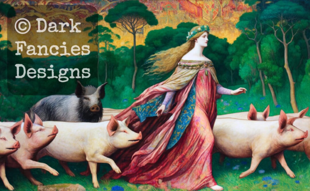 CIRCE and the SWINE Beautiful Pre-raphaelite Style Painting of the ...