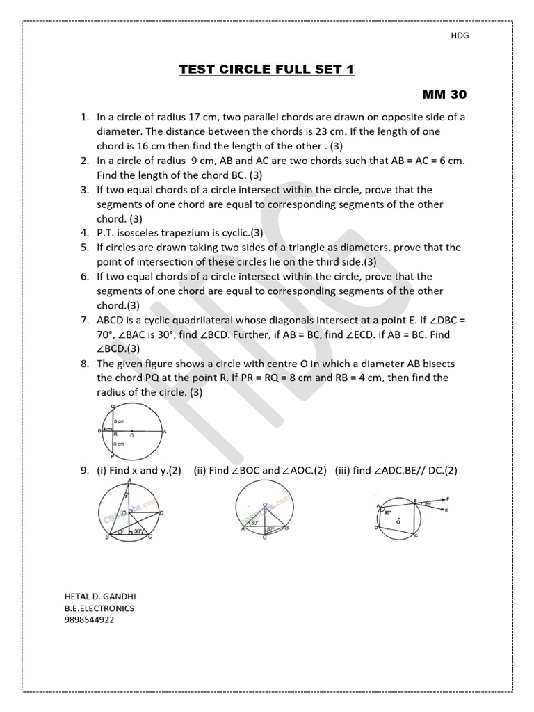 Practice Test on Circle | Download Free Printable Circle Questions and ...