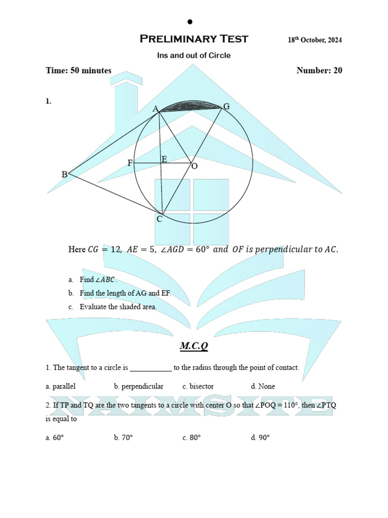Preliminary Test Circle 1 | PDF | Circle | Tangent
