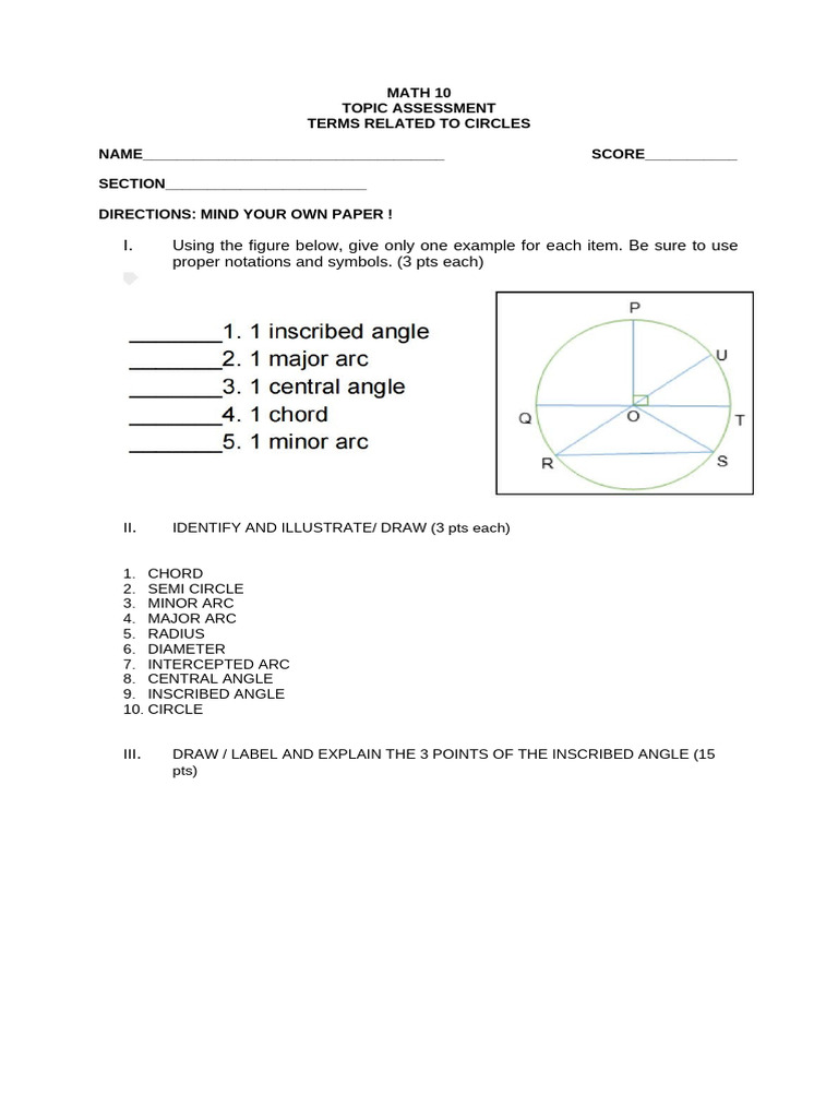 Circle Terminology Assessment Guide | PDF