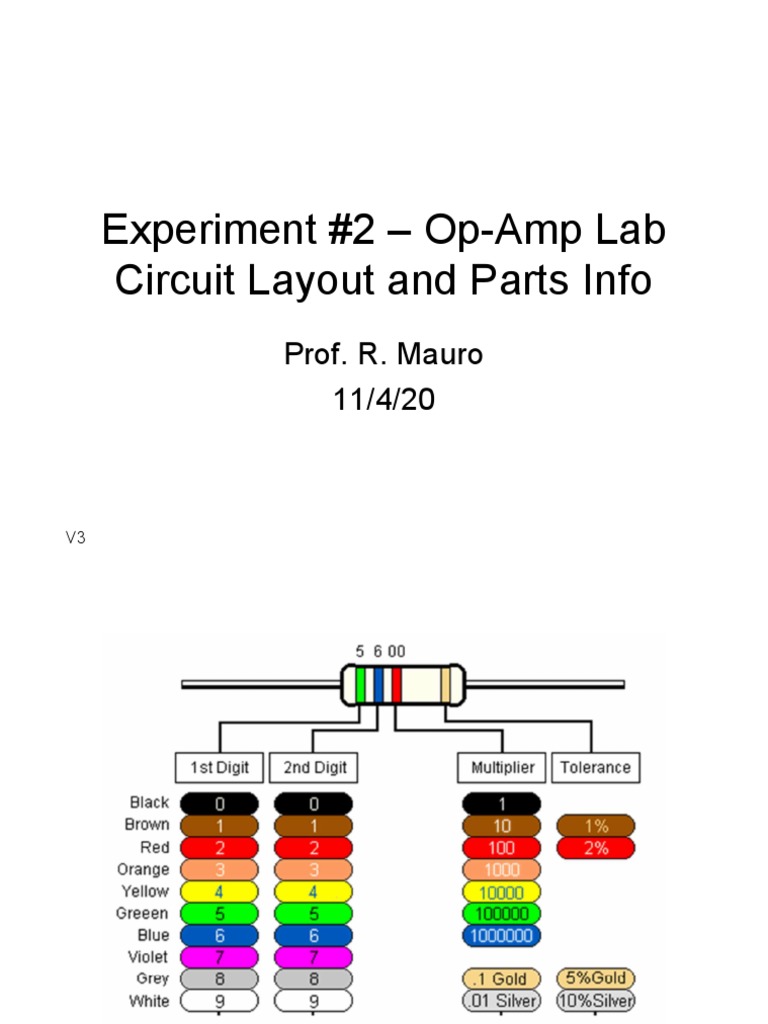 Experiment #2 - Op-Amp Lab Circuit Layout and Parts Info: Prof. R ...
