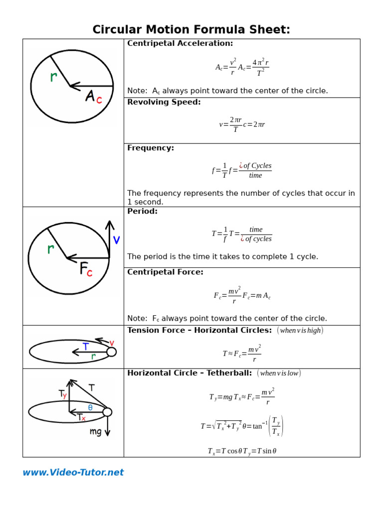 Circular Motion Formula Sheet | PDF | Force | Applied And ...