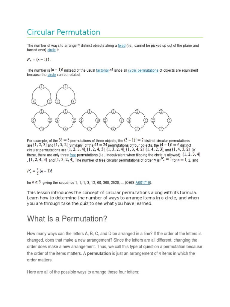 Circular Permutation | Formula, Types & Examples - Lesson | Study.com