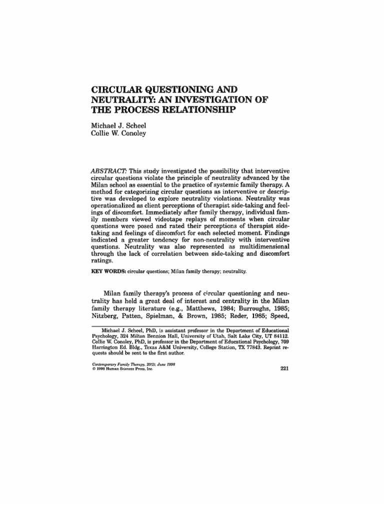 Circular Questioning and Neutrality: An Investigation of the Process ...