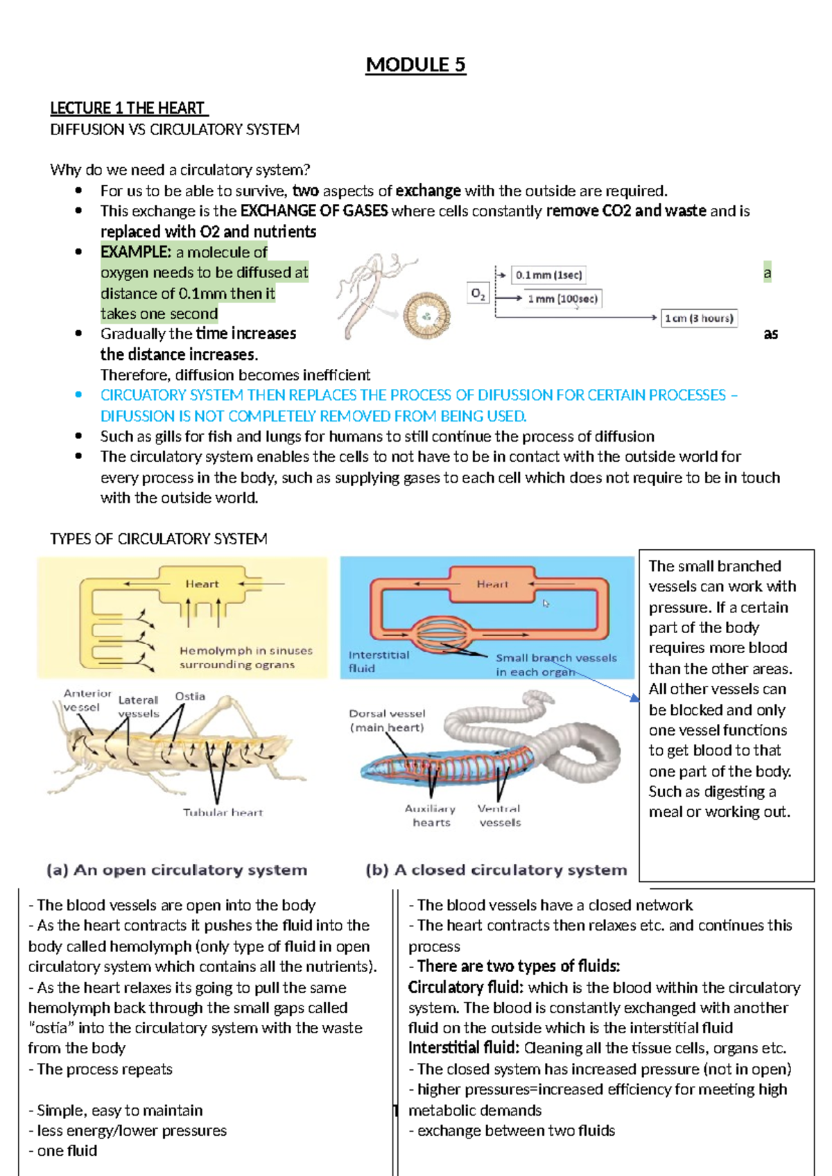 Module 5 - MODULE 5 LECTURE 1 THE HEART DIFFUSION VS CIRCULATORY SYSTEM ...