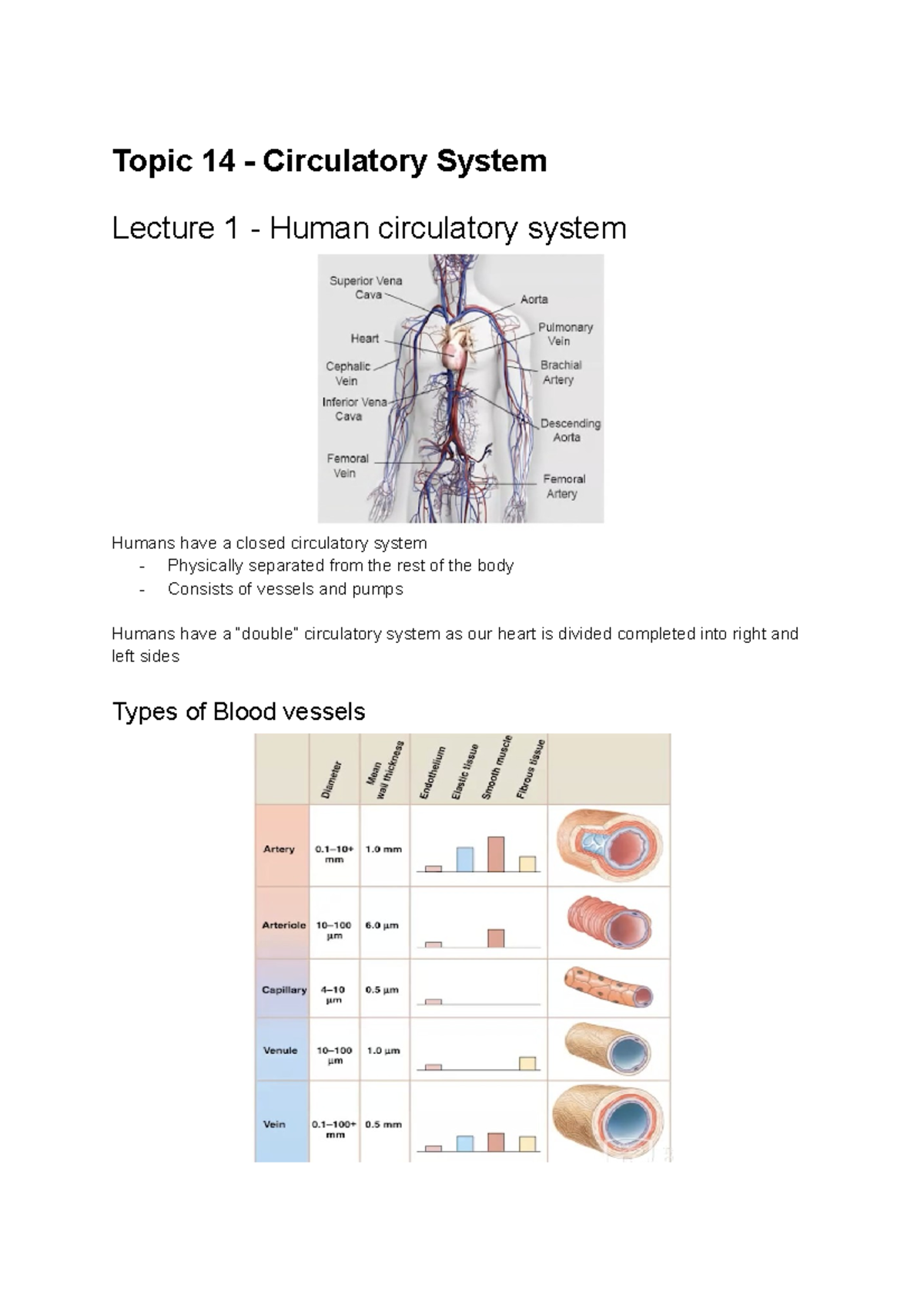 Circulatory System Overview - Biology 9 Module 1 Notes - Studocu