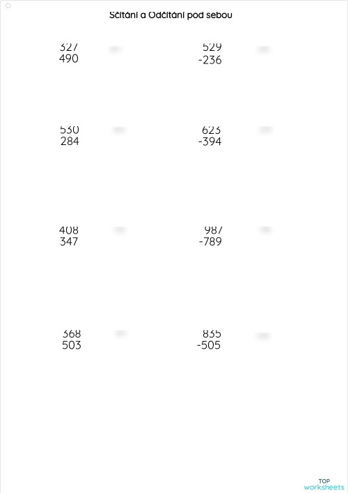 Sčítání a odčítání pod sebou. Interaktivní pracovní list | TopWorksheets