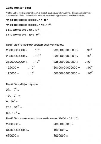 Zhrnutie - Veľké čísla, zaokrúhľovanie, počtové operácie, rímske čísla ...