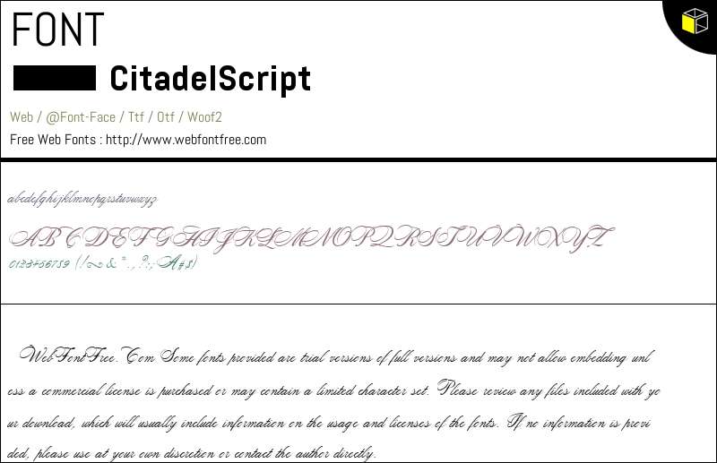 Citadel Script Fonts Downloads - WebFontFree.Com