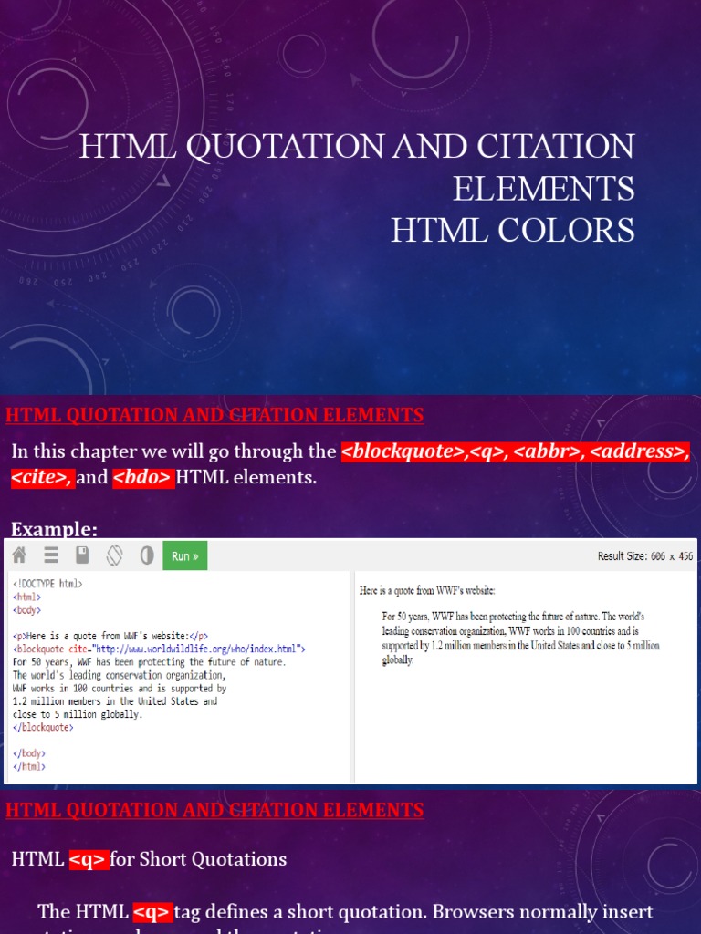 Learn HTML Quotation and Citation Elements With Example | HTML Full ...