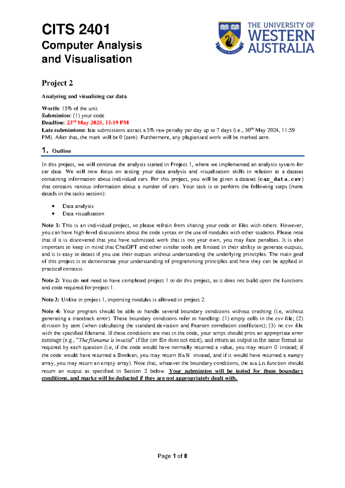 CITS 2401 Project 2: Car Data Analysis & Visualization Guide - Studocu