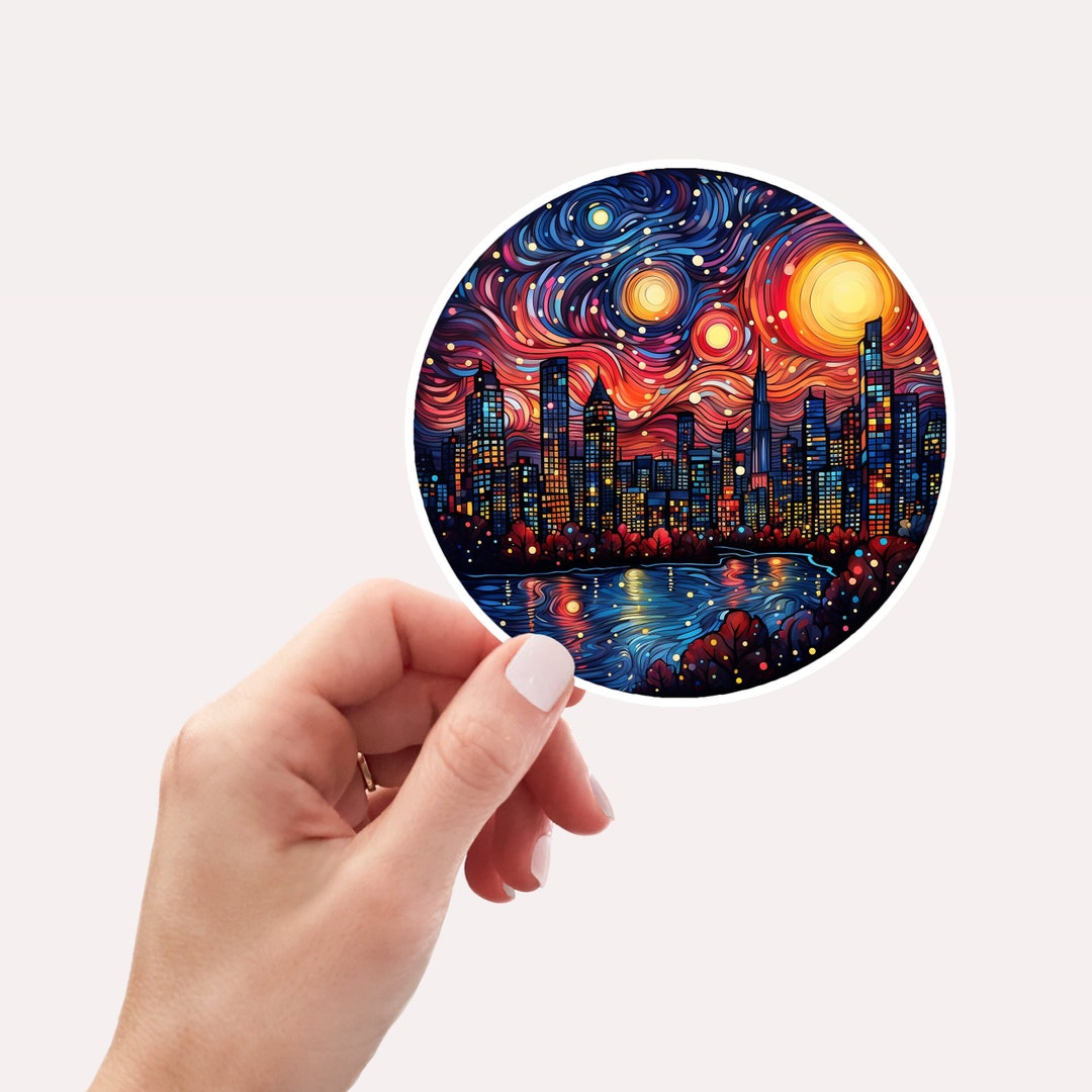 Colorful City Lights Vinyl Sticker, City Skyline Sticker, Van Gogh ...