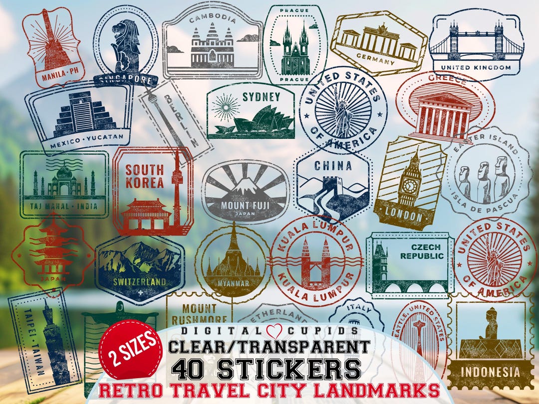 Printed Clear Stickers Pack of City Landmarks, Transparent Cities ...