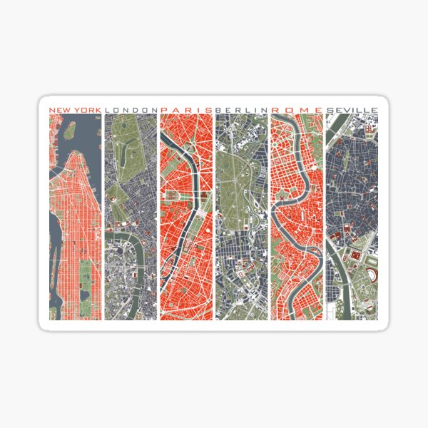 "Six Cities map" Sticker for Sale by PlanosUrbanos | Redbubble