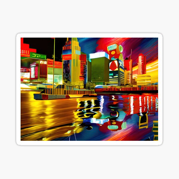 "Neon City Scape" Sticker for Sale by Funkdog | Redbubble