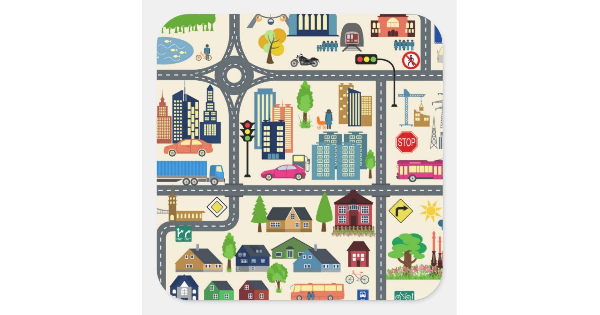City Map Pattern Square Sticker | Zazzle