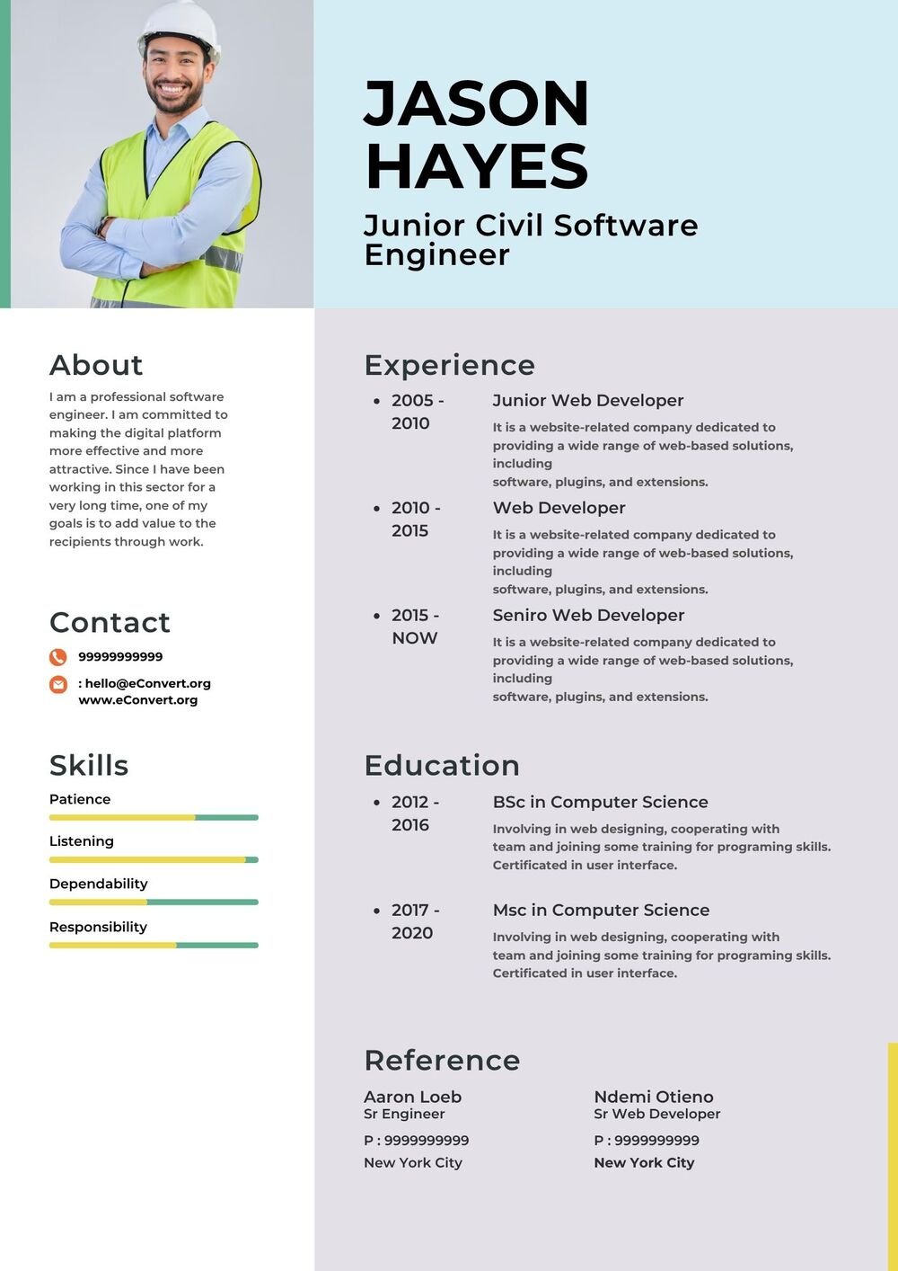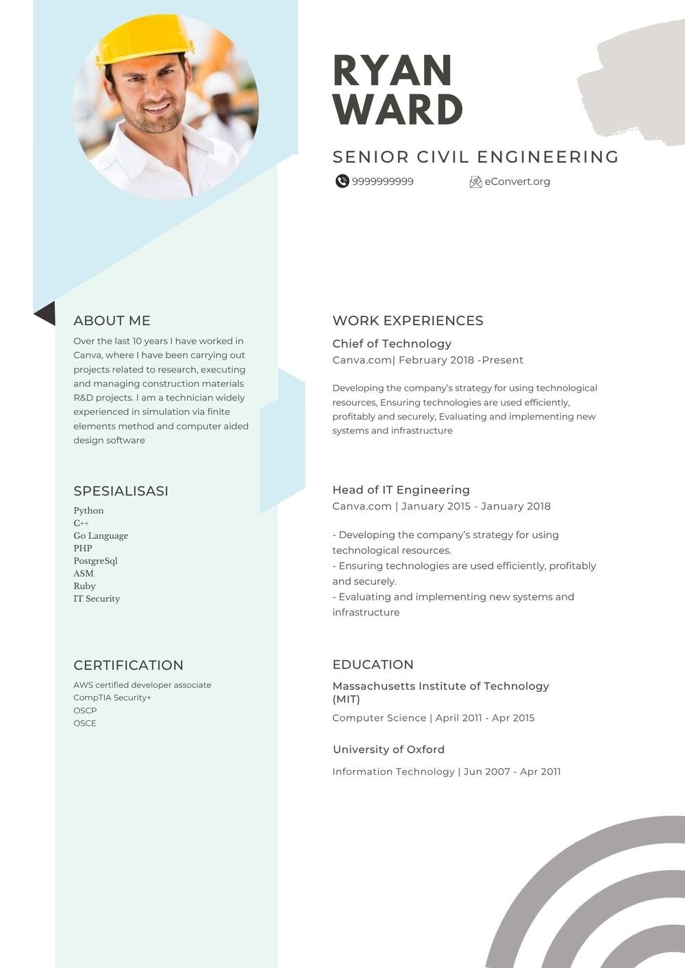 Civil Engineer Resume CV 20 Templates Download in Word (.docx)