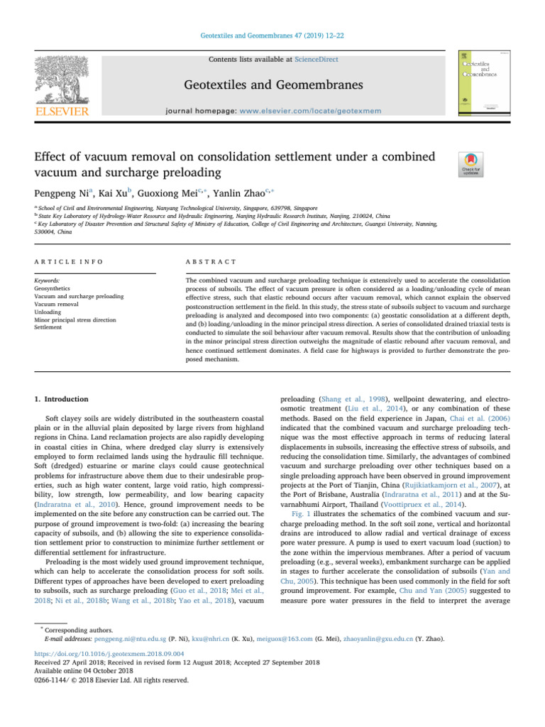 Effect of Vacuum Removal On Consolidation Settlement Under A Combined ...