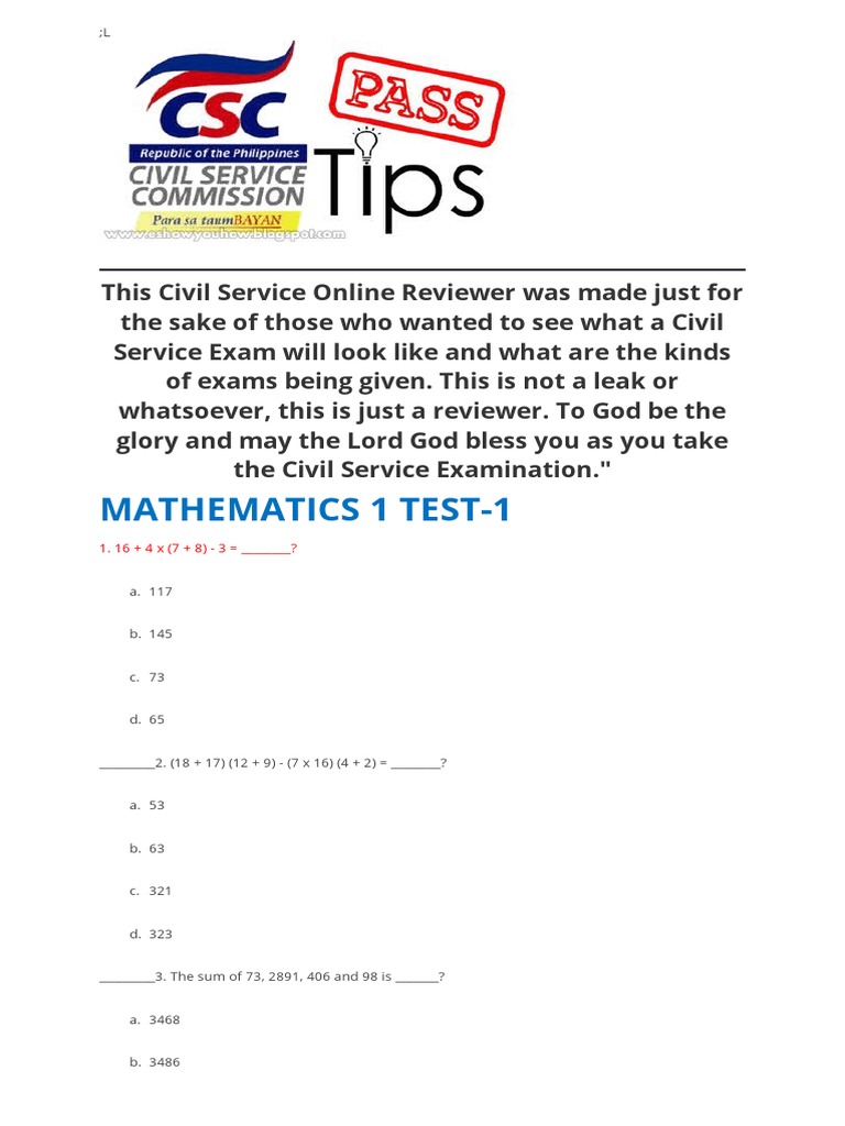 Civil Service Exam Reviewer 2021 - Practice Test for MATH with ...