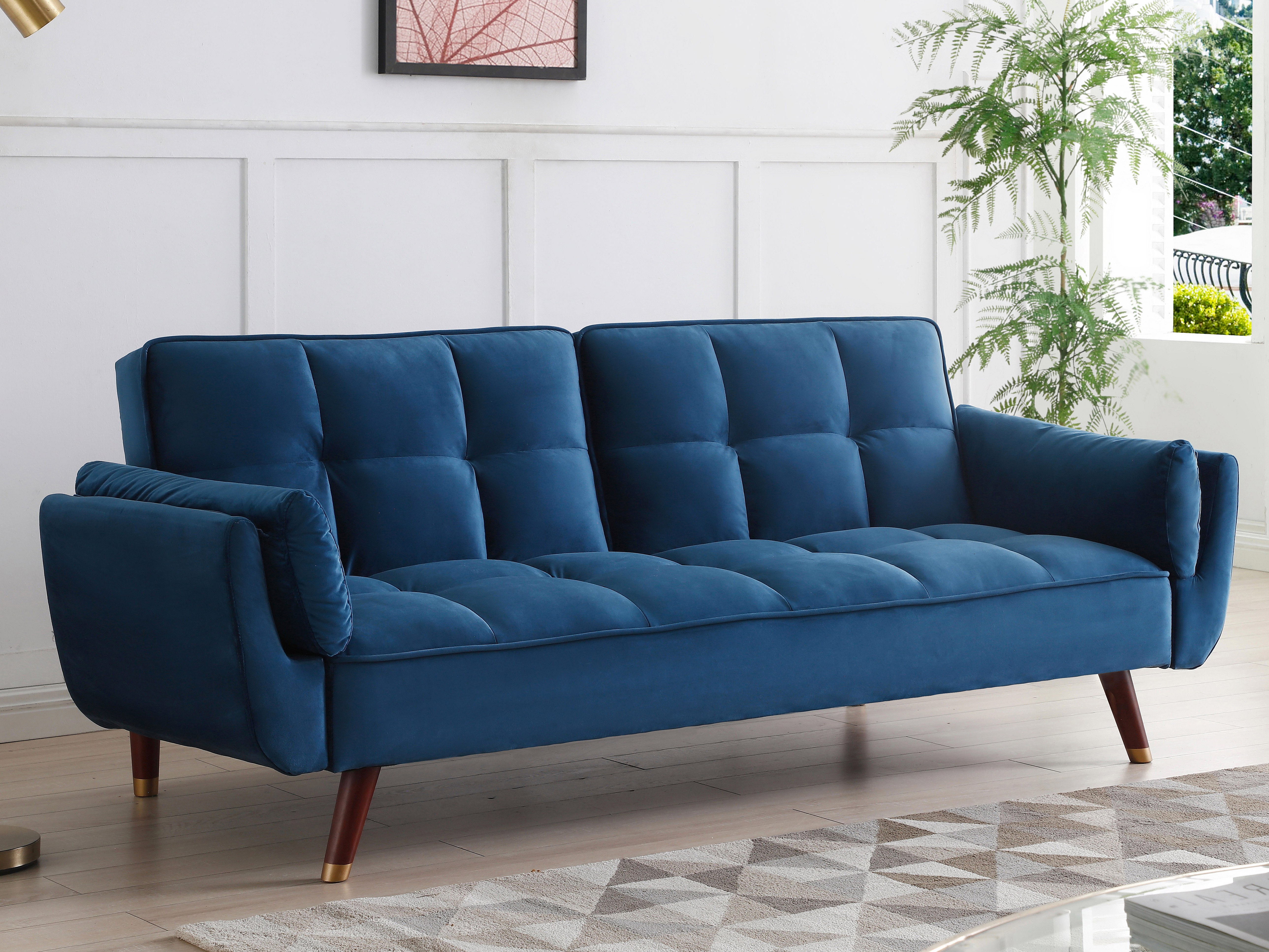 Canapé 3 places convertible clic-clac en velours bleu GULCAN