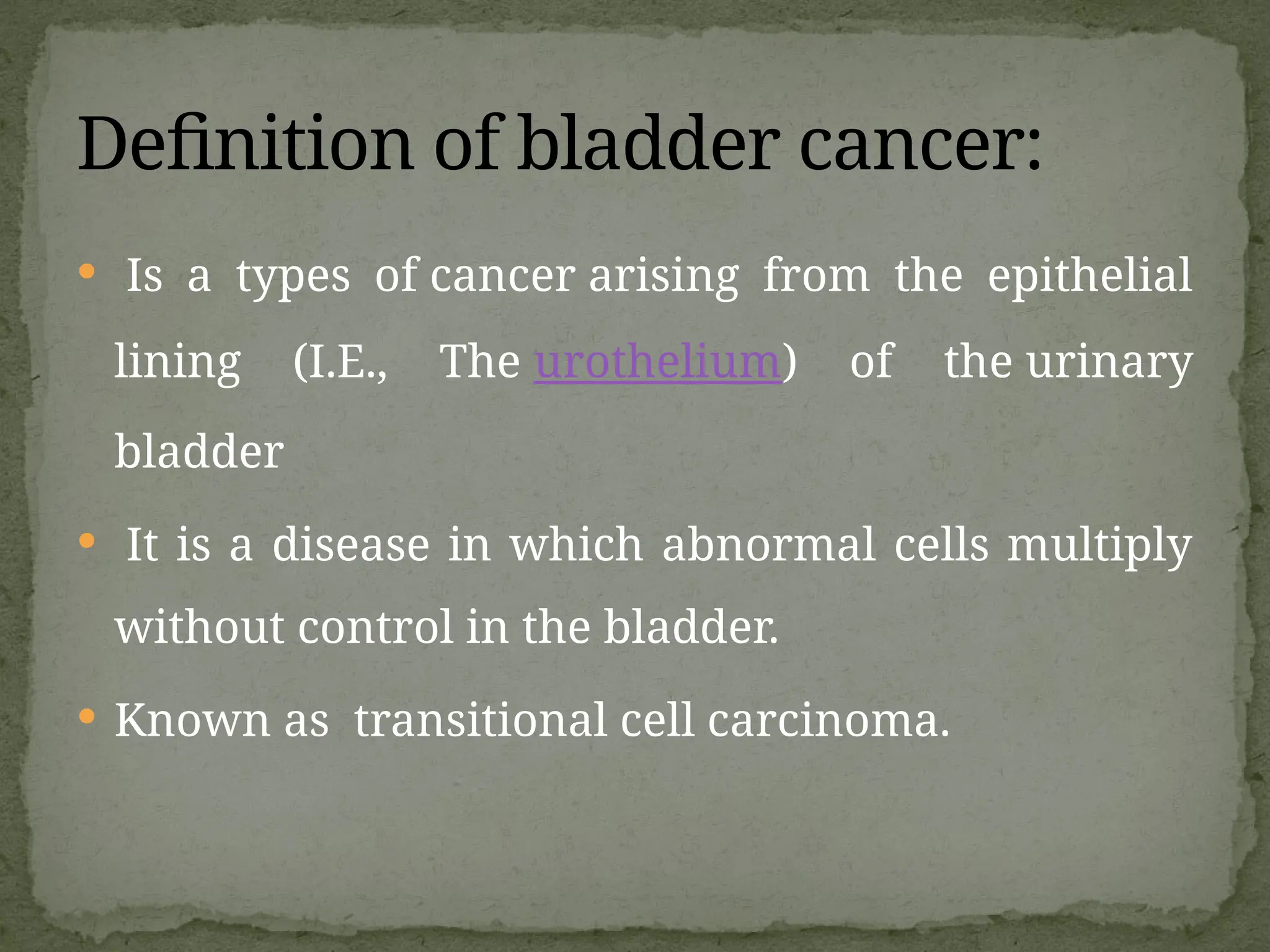 BLADDER CANCER - Definition, types, causes, pathophysiology, signs ...