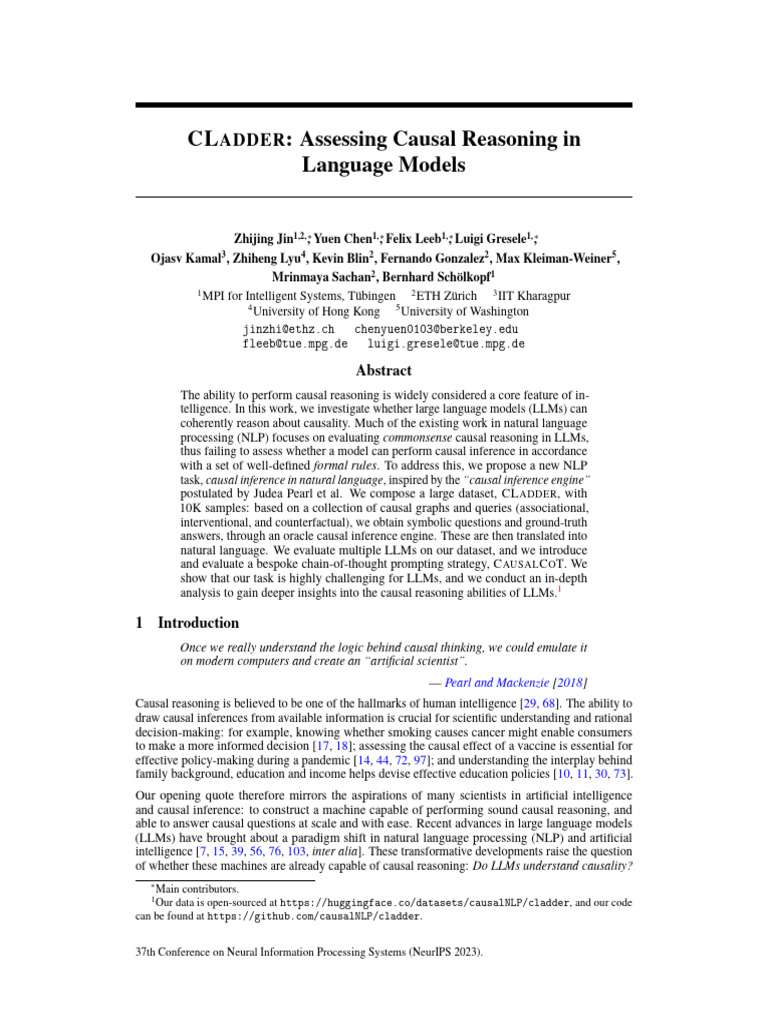 CLADDER - Assessing Causal Reasoning in Language Models | PDF ...