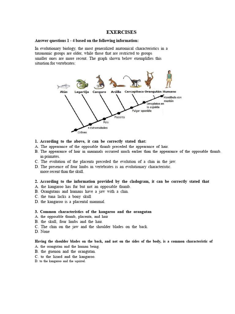 Cladogram Exercises | PDF | Clade | Marsupials