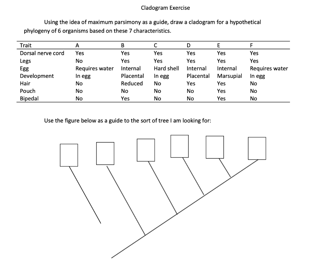 Solved Cladogram Exercise Using the idea of maximum | Chegg.com