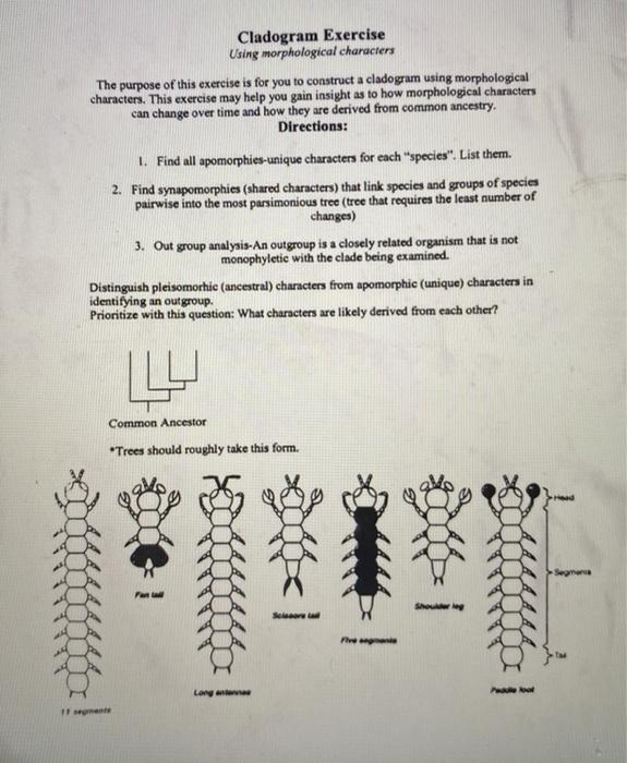 Cladogram Exercise Using morphological characters The | Chegg.com