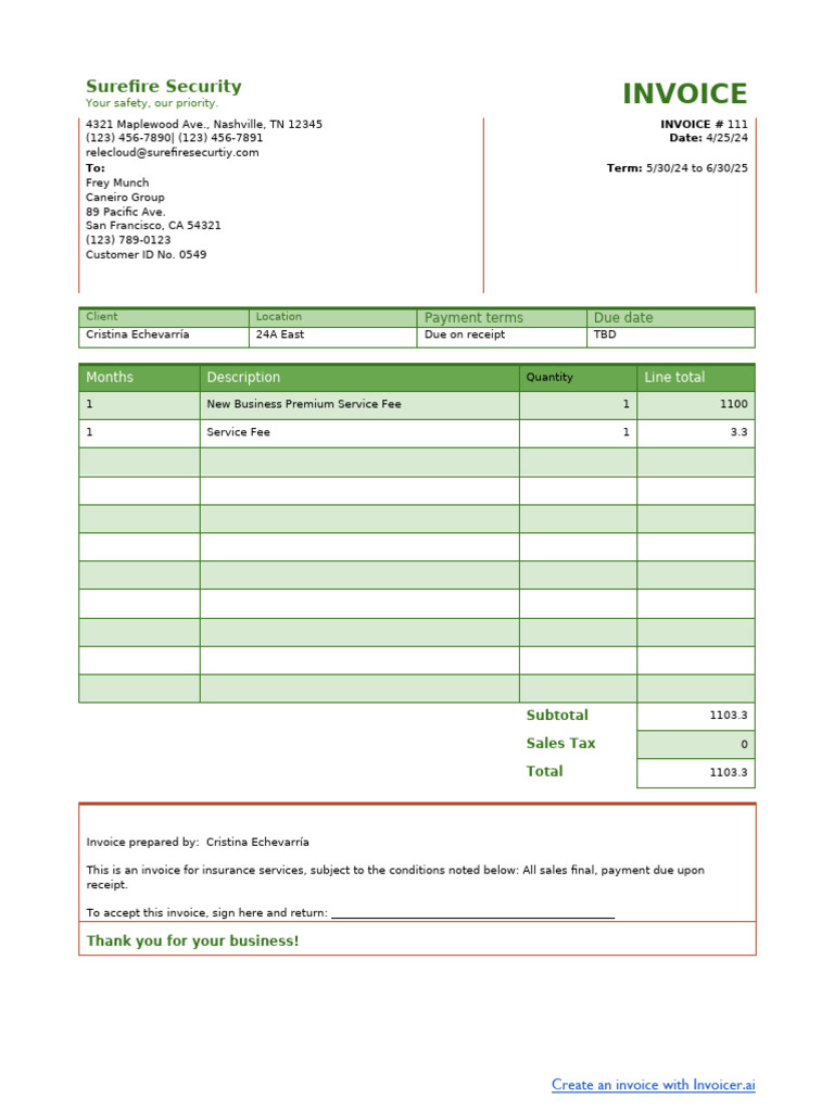 Insurance invoice Template - Free Examples in PDF, Word & Excel Formats