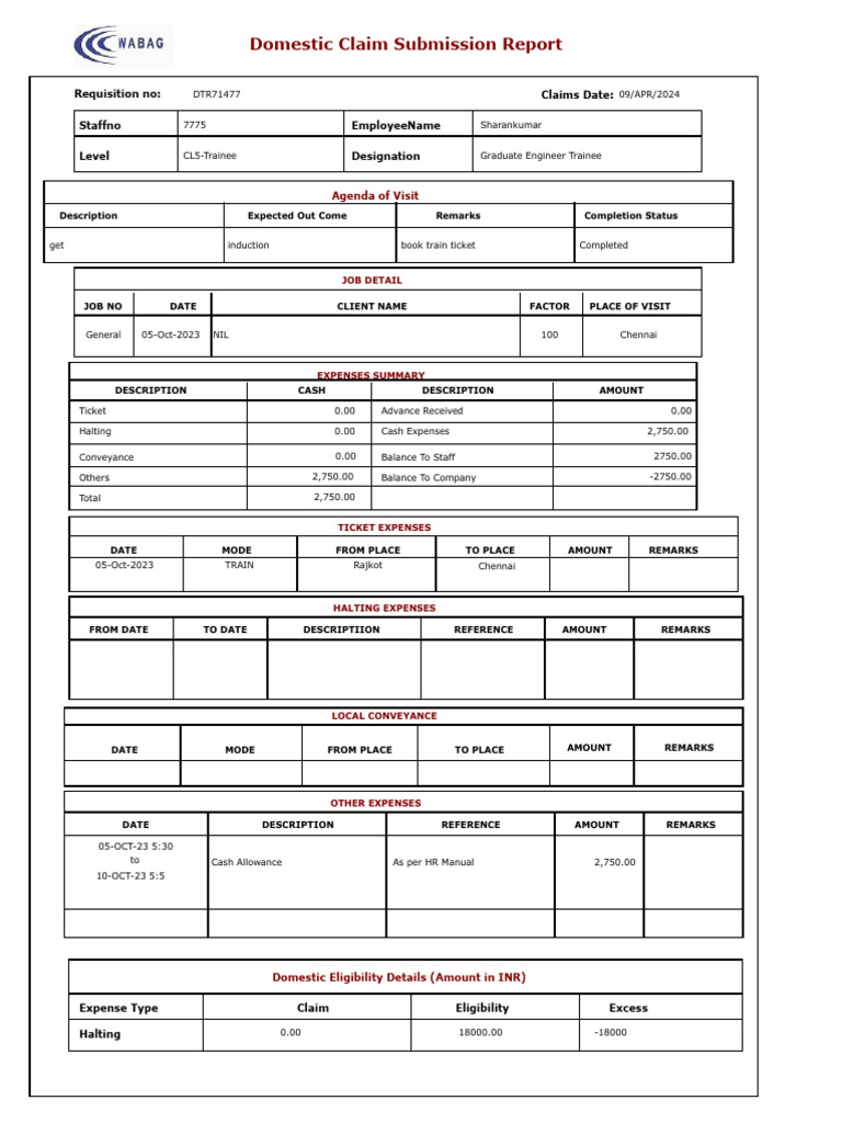 Employee Claim Report Template | Create and Download Now