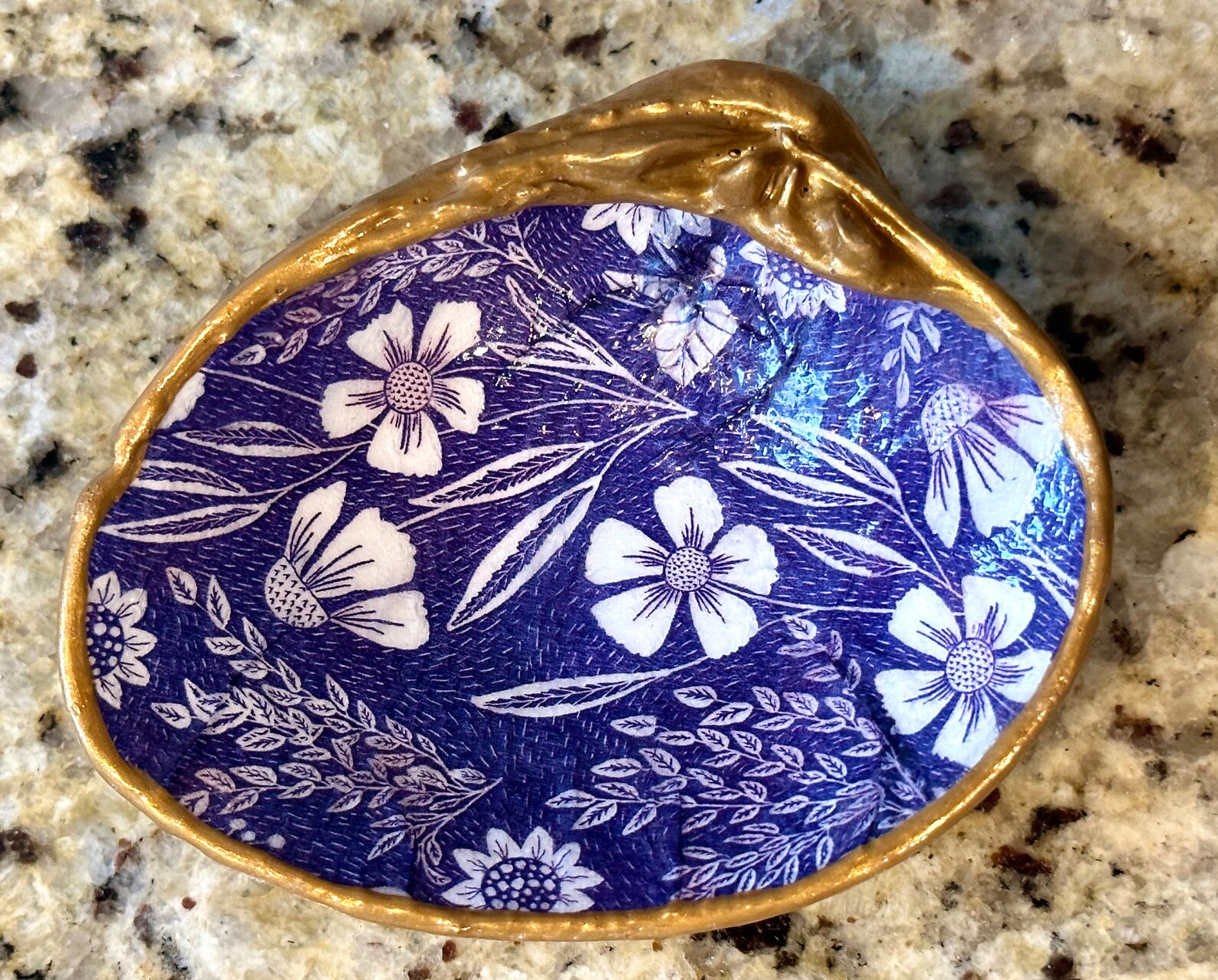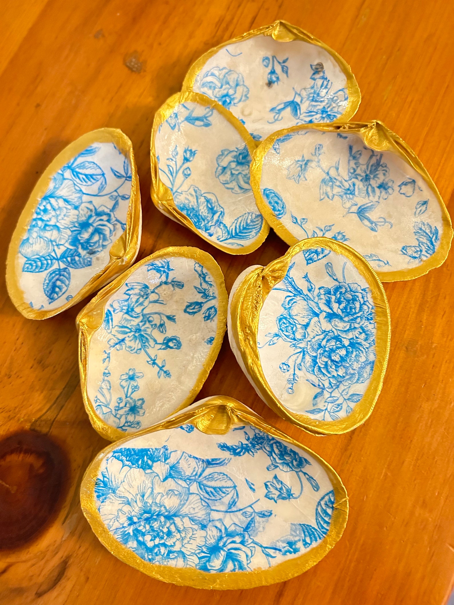 Decoupage Blue and White Floral Pattern on a Hand Painted, Real, Clam ...