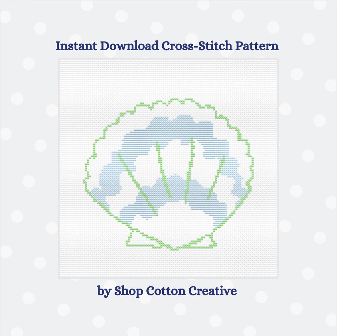 Clam Shell Blue & Green Coastal Downloadable Needlepoint Cross-stitch ...