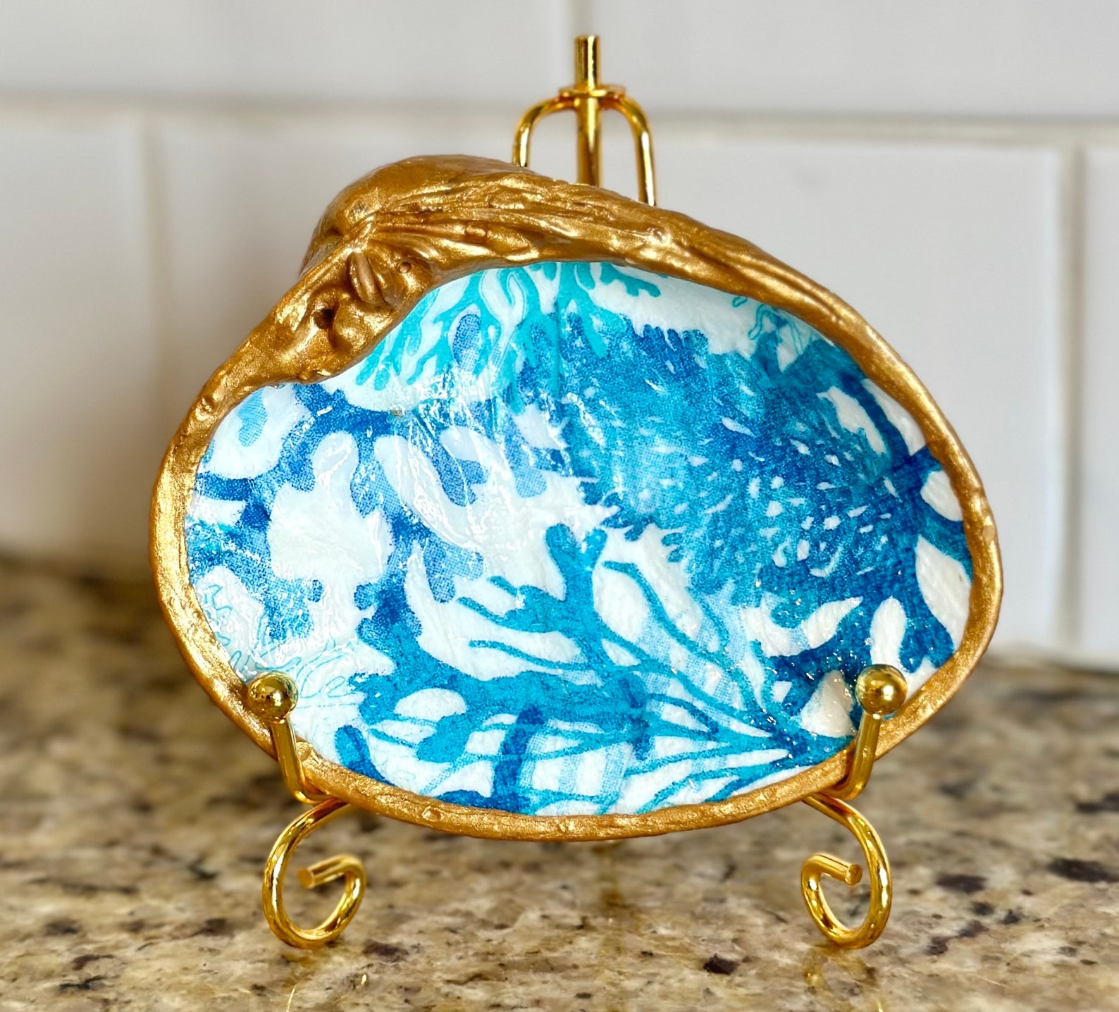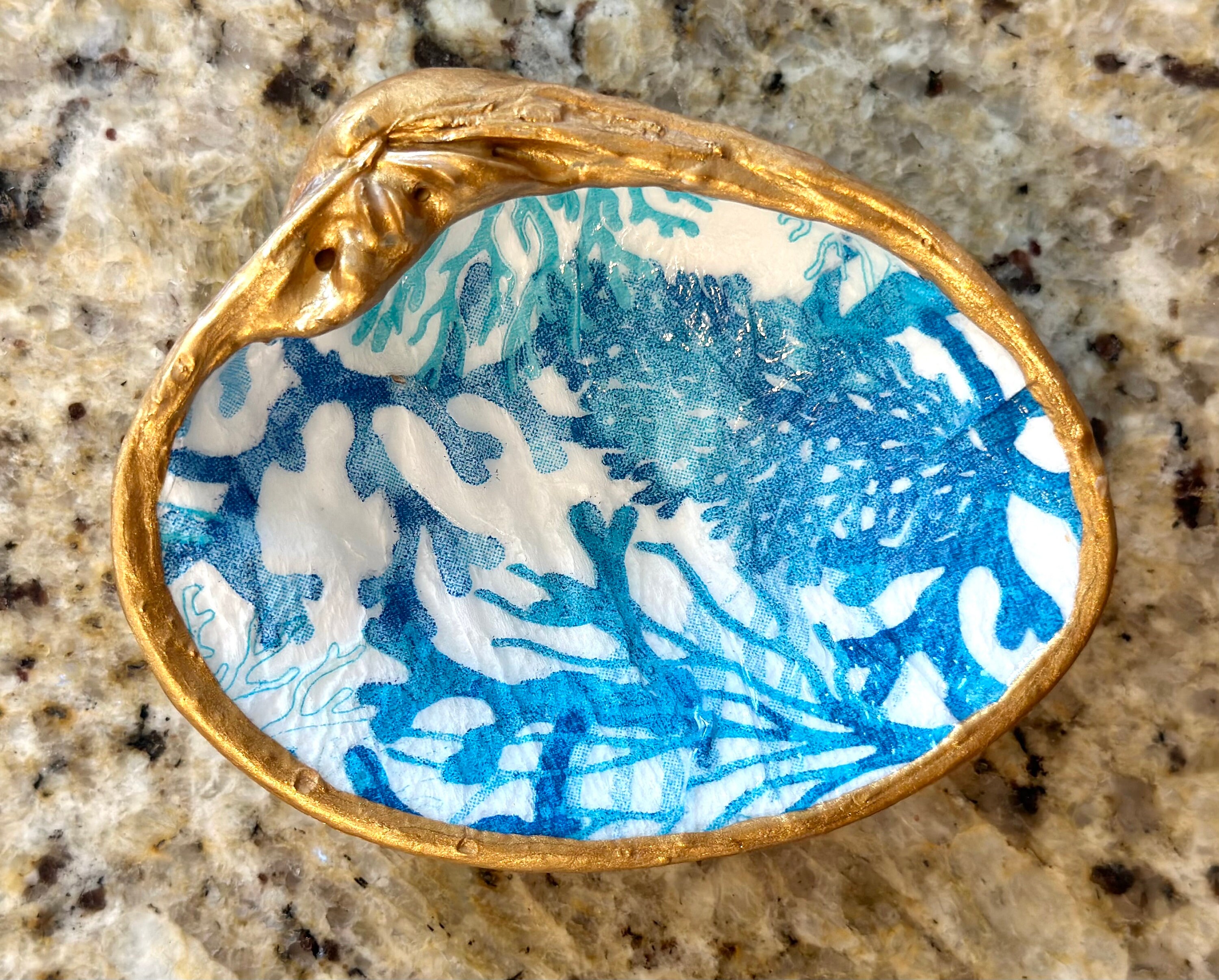 Decoupage Blue Coral Pattern on a Hand Painted, Real Clam Shell. *shown ...