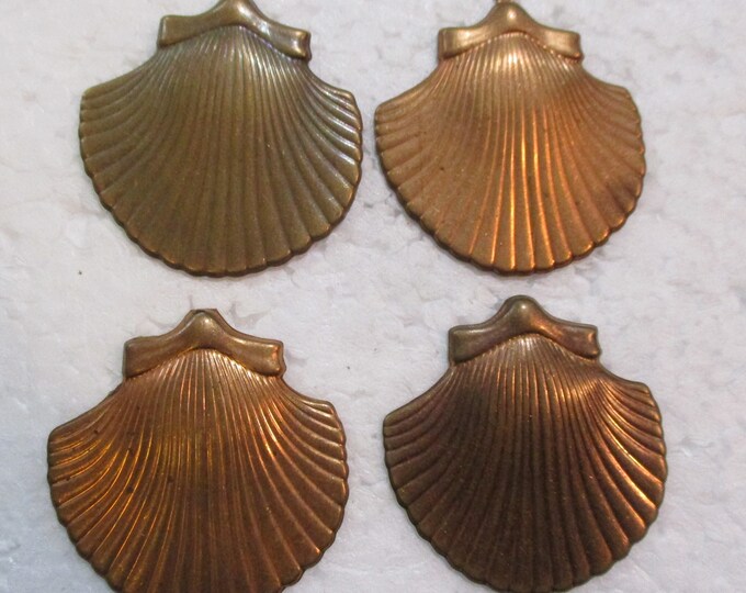 4 Vintage Clam Shell Shaped Stampings, Patina Brass, Jewelry Components ...