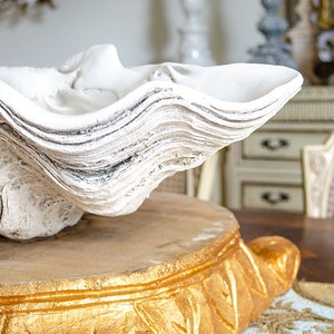Large White & Gold Clam Shell Display Dish | Shell display, Clam shell ...