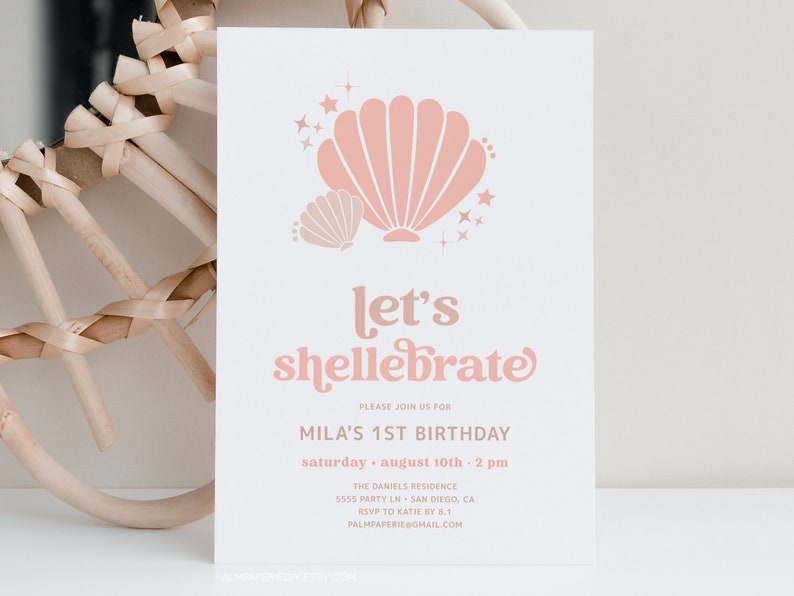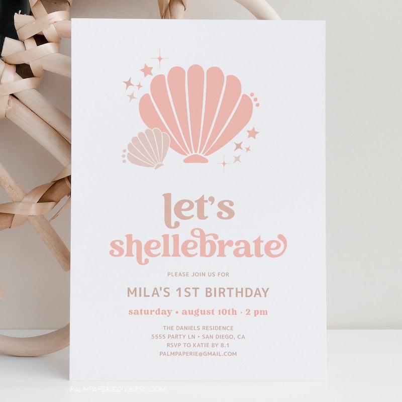 Sea Shell Invitation, Shellebrate Birthday Invite, Digital Download ...