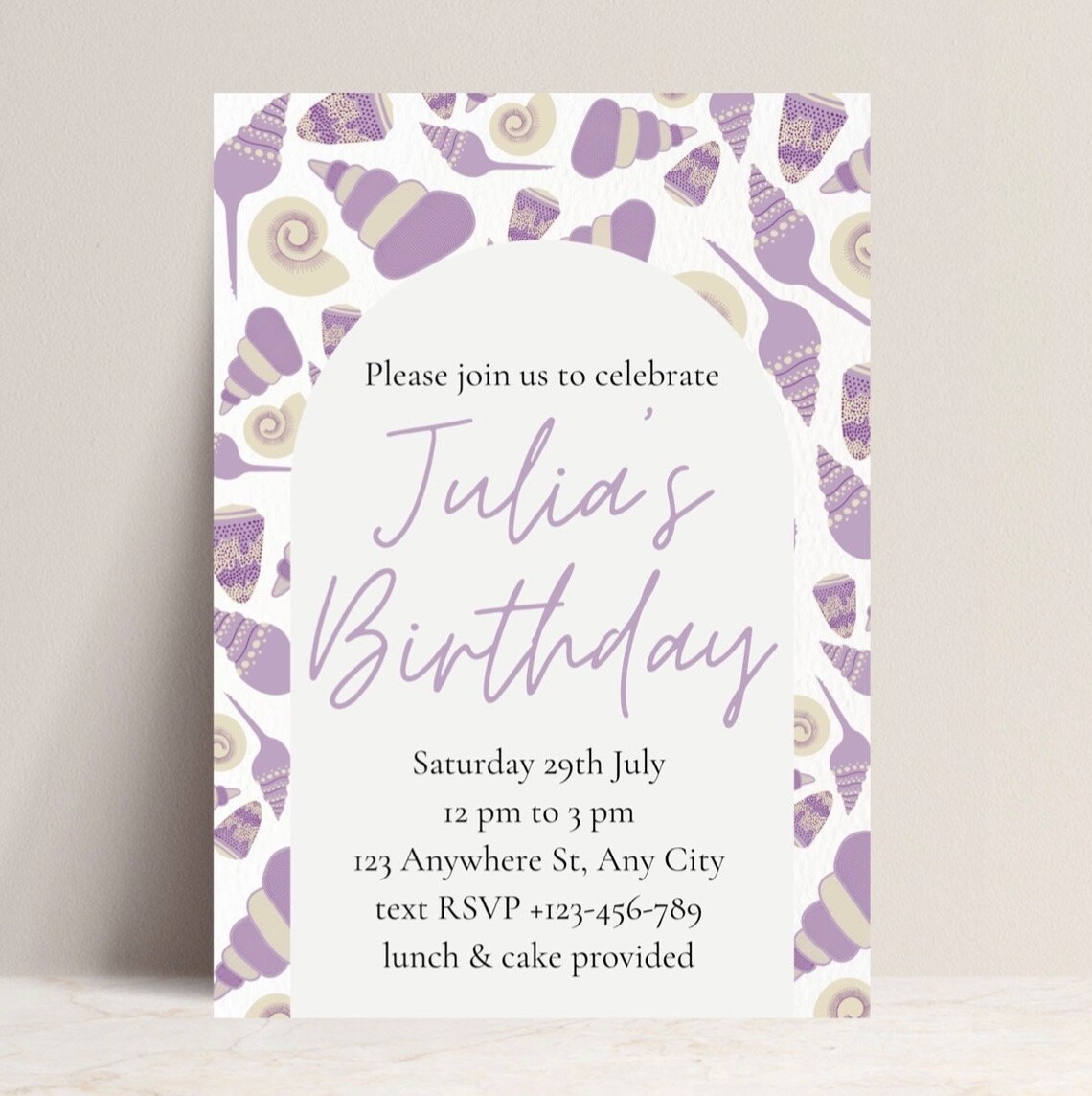 Shell Themed Party Invite - Customizable Digital Download Template - Etsy