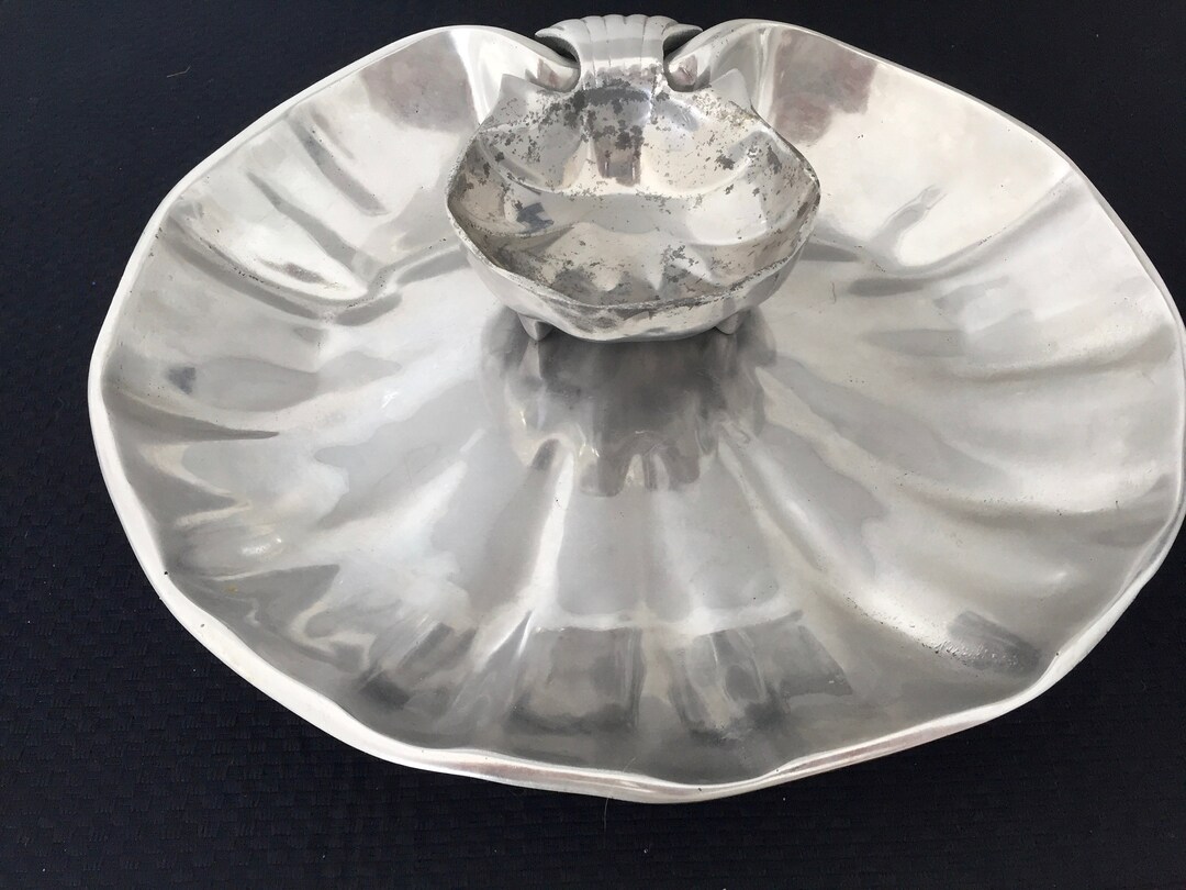 Silver Metal Clam Shell Chip and Dip Bowl Vintage Kitchen | Etsy