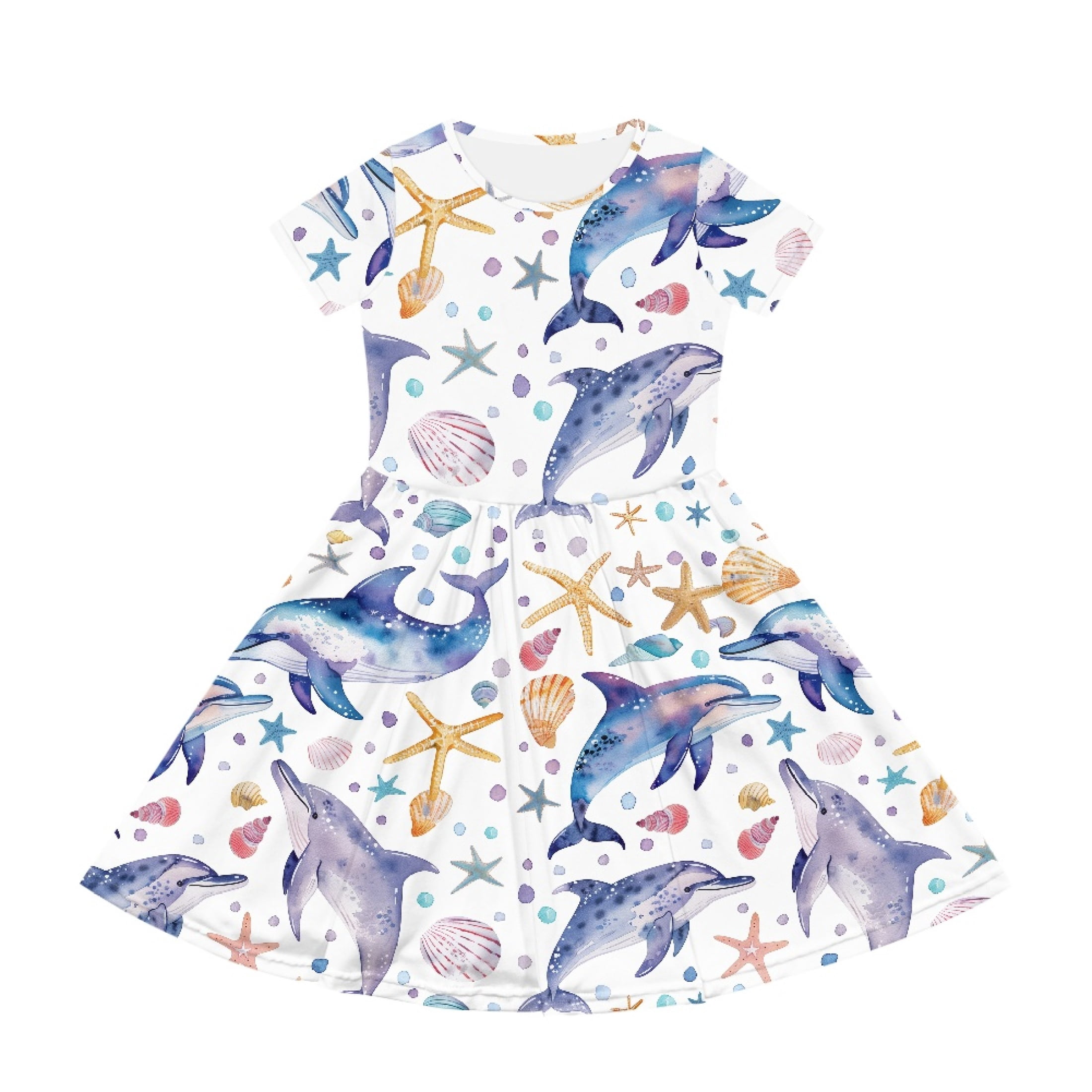 CHAQLIN Personalized Kids Short Sleeve Long Dress Dolphin 2-14 Years ...